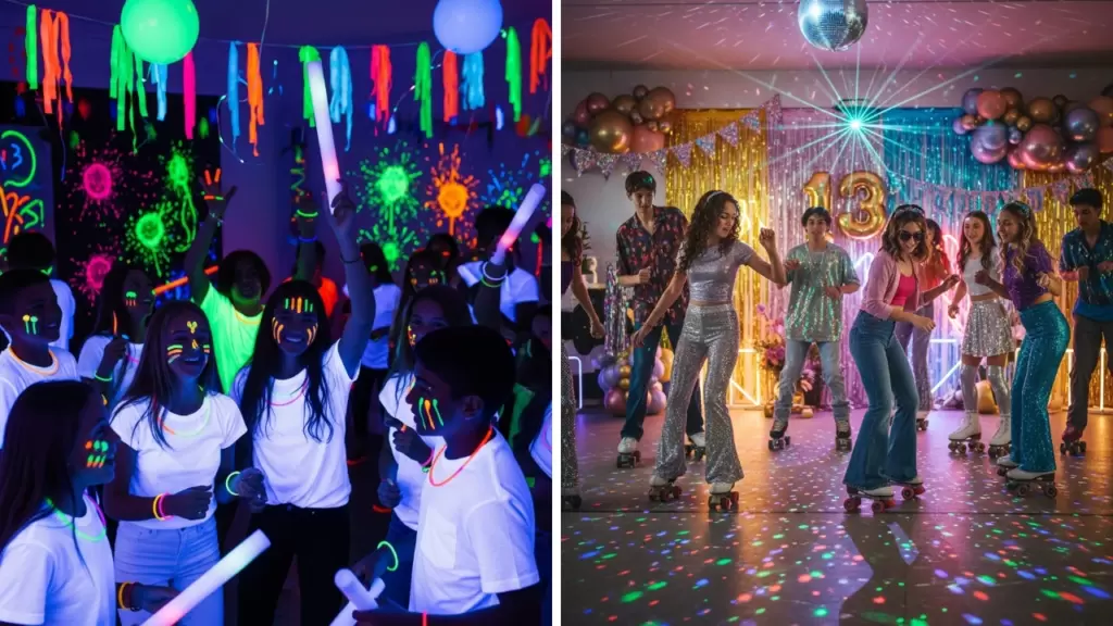 Host a blacklight party with neon decorations, glow sticks, LED balloons, and a dance playlist. Ask guests to wear white or neon clothing so they glow under UV lights, creating an awesome visual effect.