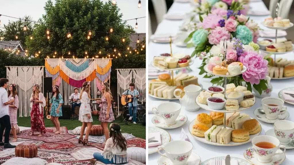 Turn your backyard into a mini-Coachella. Use lots of string lights, fringe, and bohemian decorations. Encourage guests to wear their best festival fashion. Hire a local musician if possible.