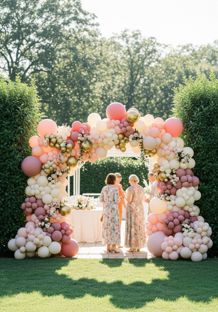 Use a balloon arch at the entrance or behind the main table to create a festive outdoor focal point. This instantly sets a celebratory tone and makes for great photos.