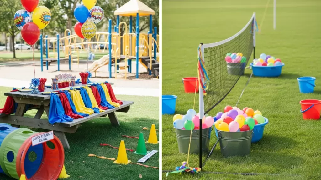 Utilize the park’s playground equipment as a natural obstacle course. Have kids practice their ‘super strength’ by crawling through tunnels or their ‘super speed’ running laps. Capes make the best party favors.