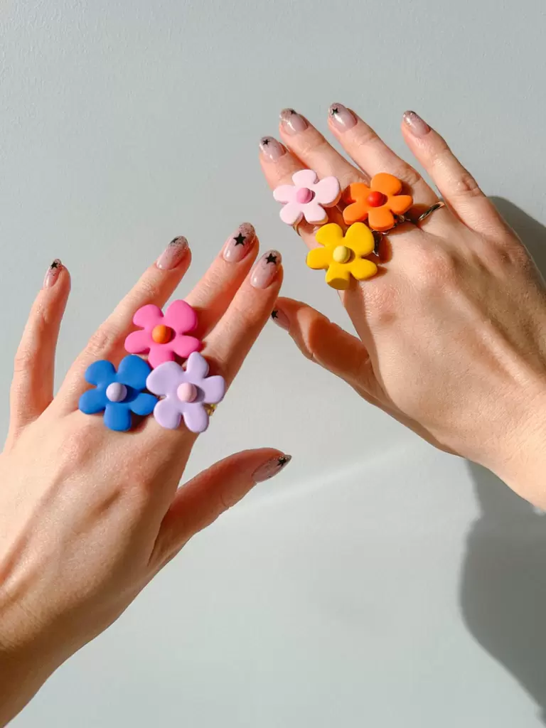 These daisy-inspired rings are a total throwback to retro styles and add a fun, colorful vibe. Because they are adjustable, you don’t have to worry about knowing their exact size.