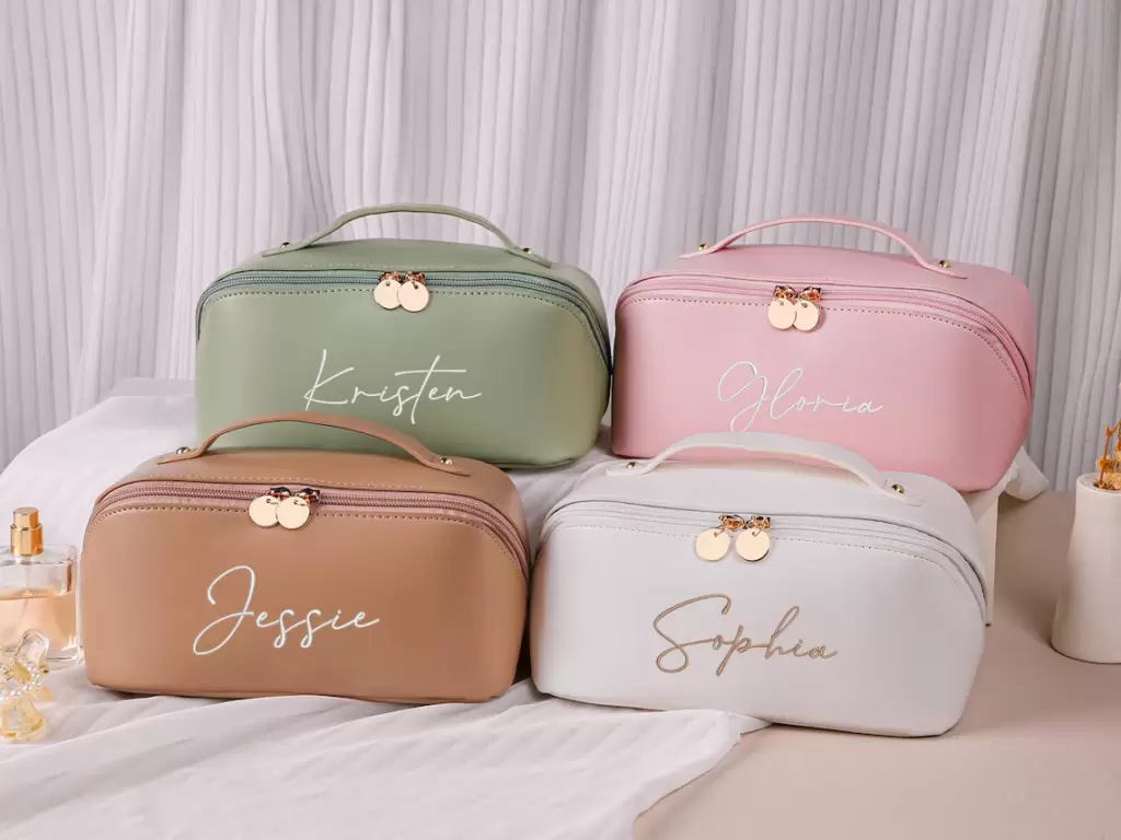 34. Personalized Leather Embroidered Makeup Bag