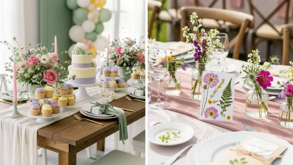 Select a natural color scheme inspired by actual wildflowers. Use sage green, dusty pink, lavender, butter yellow, and soft cream consistently across all your party elements.